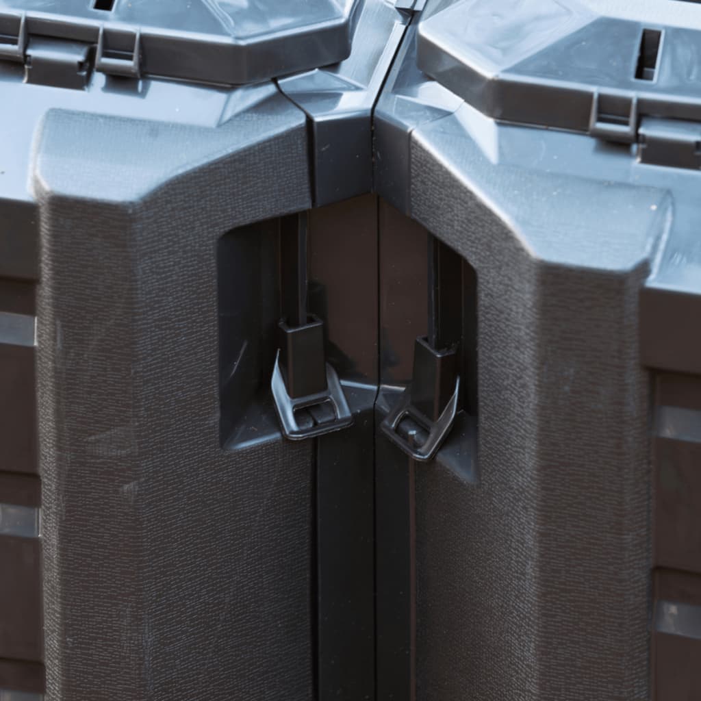 Deze Nature thermo compostbak is perfect voor snelle en eenvoudige compostering. Deze thermo compostbak is gemaakt van zwartkleurig, geïsoleerd polypropyleen. Montage is snel en eenvoudig dankzij het in elkaar grijpende scharniersysteem. Deze bak heeft een capaciteit van 1200 liter en is volledig opvouwbaar voor eenvoudige opslag. Er zijn twee openingen: een deksel met scharnieren voor de invoer van afval en een deur aan de voorkant om het omdraaien of verwijderen van de compost te faciliteren. De toevoeging van thermolen bij het maken van de zijwanden faciliteert een verhoging van de inwendige temperatuur voor een snellere afbraak van het afval.
