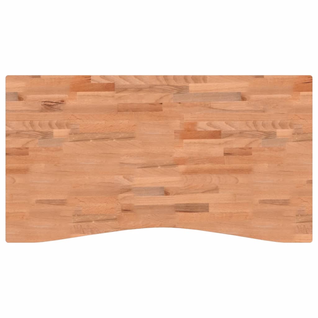 Dit houten bureaublad is de ideale oplossing om je tafels op te frissen en tegelijkertijd een natuurlijke sfeer in huis te halen. Massief beukenhout: dit bureaublad is gemaakt van massief beukenhout, een prachtig natuurlijk materiaal. Beukenhout heeft een rechte nerf en is zeer duurzaam.Veelzijdige toepassingen: dit massief houten bureaublad is perfect voor bureaus, schrijftafels, computerbureaus, eettafels en meer. Je kunt het ook combineren met elke gewenste gestileerde poten.Afgeronde hoeken: het bureaublad heeft 4 afgeronde hoeken die ongelukken helpen voorkomen en je beschermen tegen mogelijke verwondingen.Gebogen ontwerp: dankzij de gebogen rand kun je dichter bij het beeldscherm komen en zijn je polsen en borst comfortabeler voor lange werkuren.Eenvoudig schoon te maken oppervlak: het gladde tafelblad is eenvoudig schoon te maken met een vochtige doek. Goed om te weten:Elk meubel is uniek met variaties in kleuren en nerven. De levering is willekeurig, wat de exclusiviteit en individualiteit van je product garandeert.