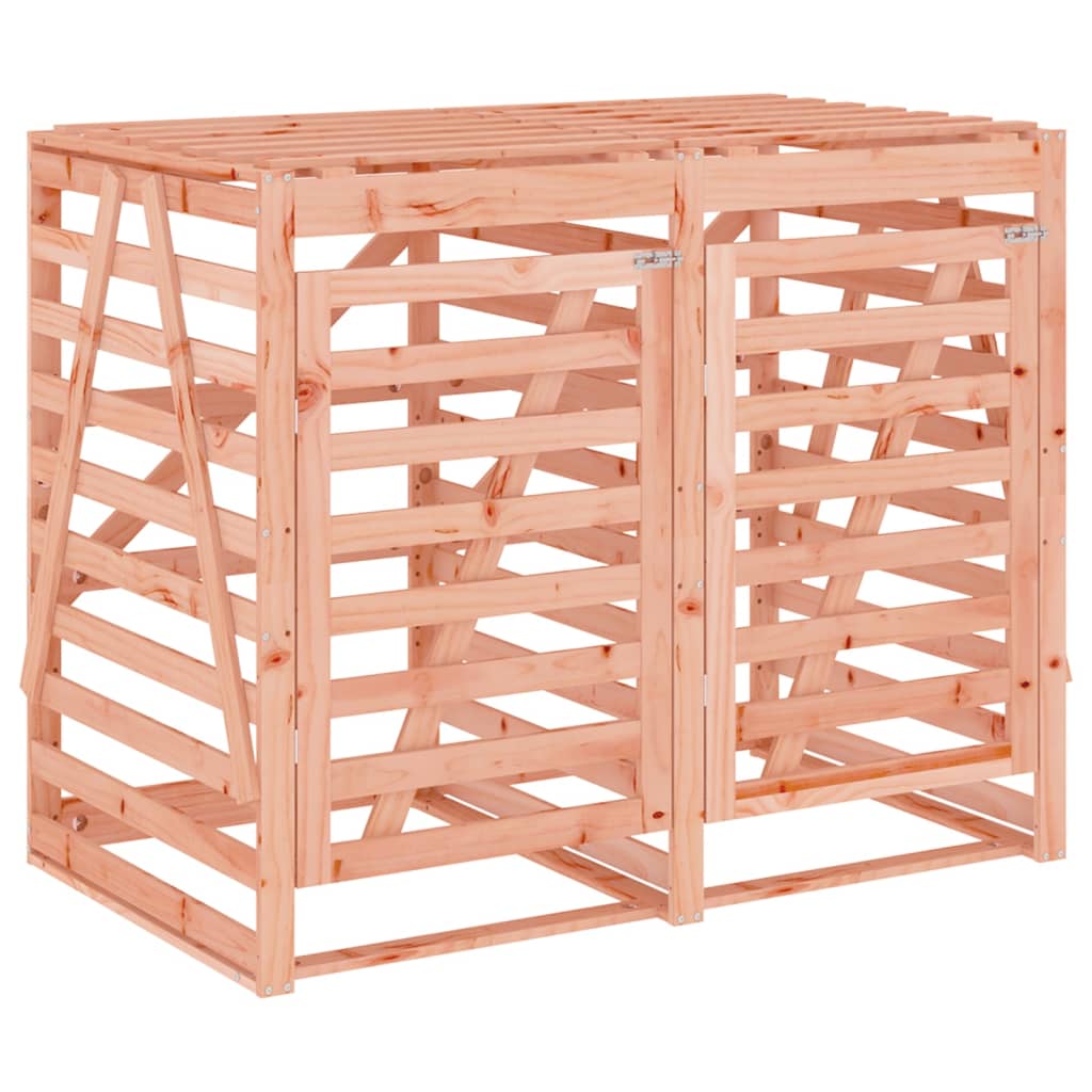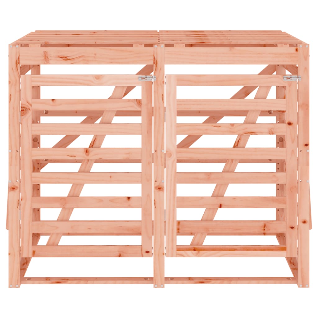 Deze dubbele houten containerberging houdt de afvalbak in je tuin uit het zicht en zorgt voor een mooie en nette omgeving. Massief douglashout: de containerberging voor buiten is gemaakt van massief douglashout voor stevigheid en duurzaamheid. Massief douglashout is een zeer duurzame houtsoort die perfect is voor buiten. Douglashout is bovendien sterk en heeft ook onder invloed van het weer weinig onderhoud nodig.Eenvoudig in gebruik: dankzij de deur en het deksel kun je de afvalbak gemakkelijk plaatsen en verwijderen. Bovendien heeft de afvalbakberging grendels aan de voorkant om de deuren goed gesloten te houden.Ventilatieontwerp: de containerberging is gemaakt van houten latten en laat lucht door, waardoor stank in de bak wordt voorkomen.Verlengbaar ontwerp: je kunt je afvalbakberging vergroten door extra verlengstukken toe te voegen, zodat er meer bakken in kunnen. Deze zijn afzonderlijk verkrijgbaar in de shop.Flexibele deurinstallatie: de deur van de containerberging kan naar eigen behoefte zowel links als rechts worden gemonteerd.