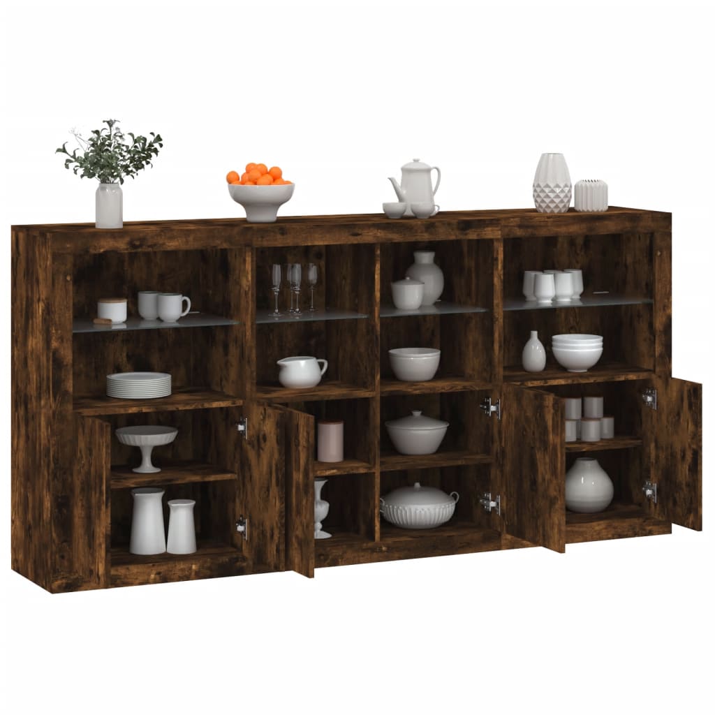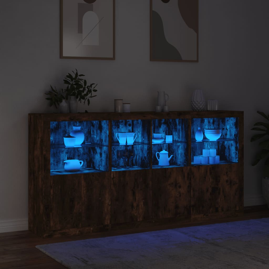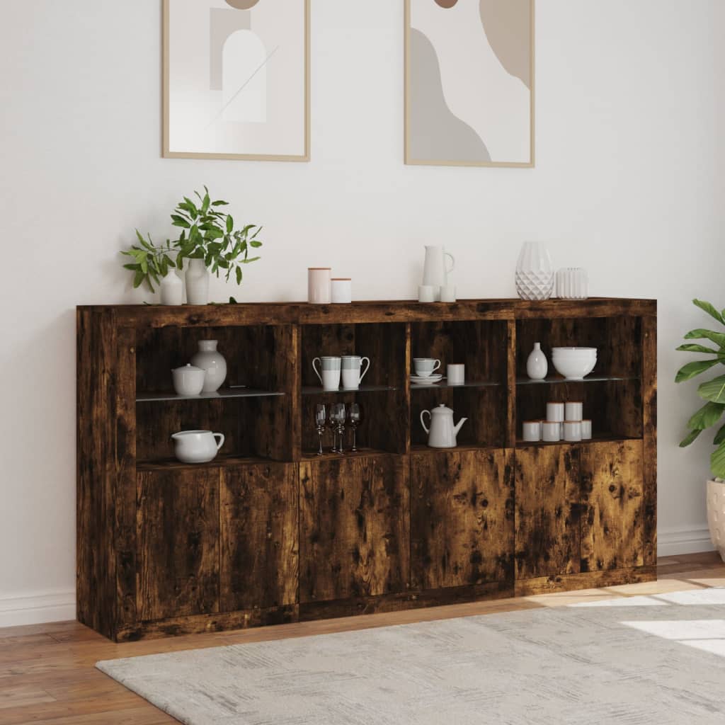 Provira Dressoir met LED-verlichting 202x37x100 cm gerookt eikenkleurig