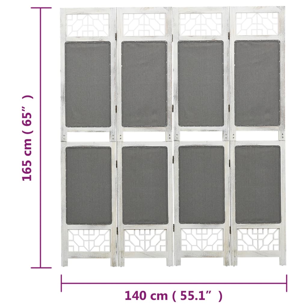 Provira Kamerscherm met 4 panelen 140×165 cm stof grijs