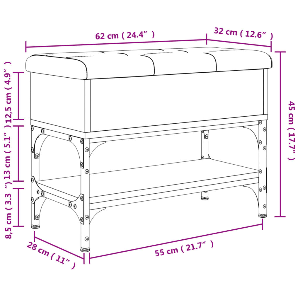Provira Schoenenbank 62x32x45 cm bewerkt hout grijs sonoma eikenkleurig