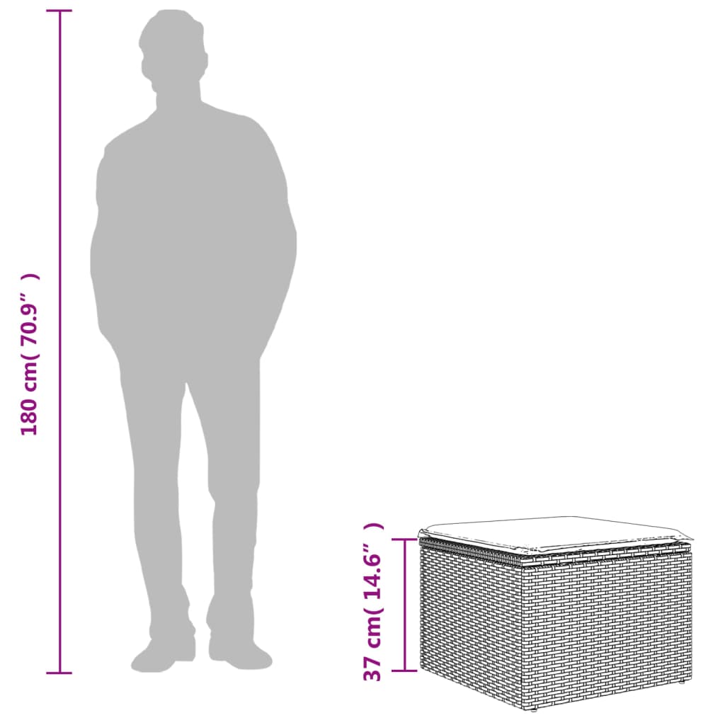 Ontspan en geniet op deze comfortabele en duurzame tuinkruk van je buitenruimte! Duurzaam materiaal: PE-rattan, ook wel poly rattan genoemd, is een sterke, onderhoudsarme kunststof die lijkt op natuurlijk rattan. Het is licht van gewicht en gemakkelijk schoon te maken en wordt vaak gebruikt voor tuinmeubelen vanwege de duurzaamheid en weerbestendige eigenschappen.Comfortabele zitervaring: dit buitenmeubel, compleet met dik gevoerd kussen, biedt een comfortabele zitervaring.Afneembare en wasbare hoes: deze zitkussen heeft een afneembare hoes, waardoor hij eenvoudig te wassen en te onderhouden is. Robuust en stabiel frame: het gepoedercoat stalen frame zorgt ervoor dat het tuinmeubel sterk en stabiel is voor dagelijks buitengebruik. Goed om te weten:Om de levensduur van je tuinmeubelen te verlengen, raden wij je aan om de meubelen met een waterbestendige hoes af te dekken.