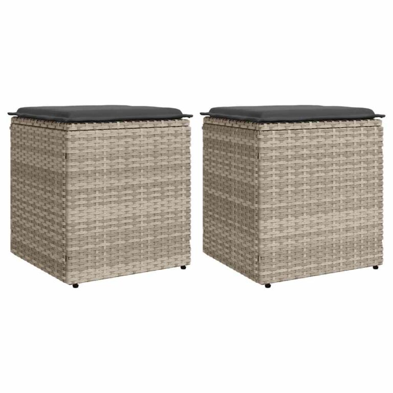 Provira Tuinkrukken met kussens 2 st 40x40x43 cm poly rattan lichtgrijs